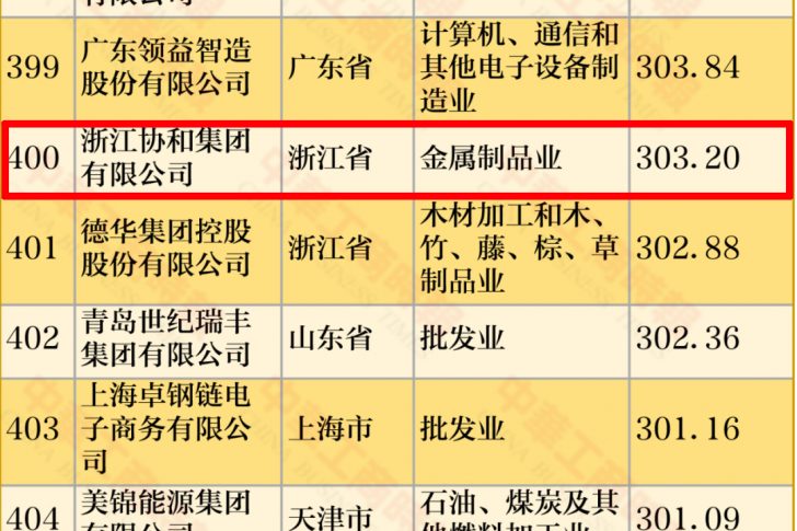 2022中国民营企业500强——开云网页版页面集团排名第400